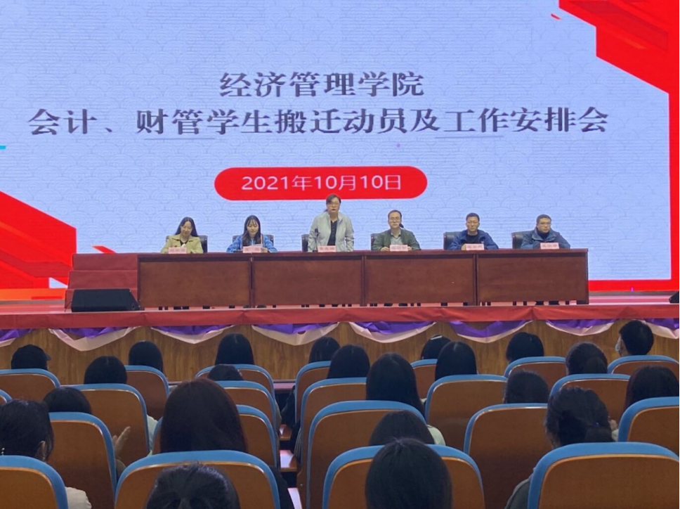 为确保会计、财管专业学生搬迁工作安全有序进行,保障新学期教育教学工作的有序开展,10月10日下午,Beat365正版唯一官网必一召开会计、财管专业学生搬迁动员暨工作安排大会。大会由团总支书记聂蕴老师主持。学院党总支副书记李兆楠老师和副院长张召哲老师及相关辅导员出席会议,290余名学生参加此次会议。