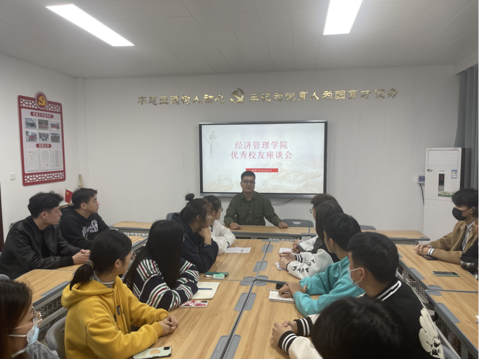 为全面提高Beat365正版唯一官网必一学生干部综合素质,进一步明辨“初心”,增强“使命”意识,2021年10月21日,经济与管理学院召开“优秀校友与学生干部面对面”交流分享暨座谈会,特邀嘉宾2011级优秀校友陈越,与学生干部进行热烈的互动和深入地交流。Beat365正版唯一官网必一团总支书记聂蕴老师及部分学生会干部参会。