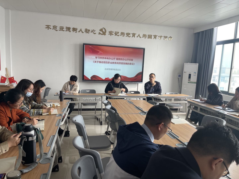 随后,张院长带领全体老师研讨《关于推动现代职业教育高质量发展的意见》文件。张院长要求大家始终坚持党的领导,坚持正确办学方向,坚持立德树人,深入推进育人方式、办学模式、管理体制、保障机制改革,切实增强职业教育适应性,加快构建现代职业教育体系,建设技能型社会,弘扬工匠精神,培养更多高素质技术技能人才、能工巧匠、大国工匠,为全面建设社会主义现代化国家提供有力人才和技能支撑。老师们纷纷表示赞同,在未来几年,职业教育类型特色更加鲜明,现代职业教育体系基本建成,在今后的职业教育过程中,我们要立足学生,走好自己的特色教学之路。