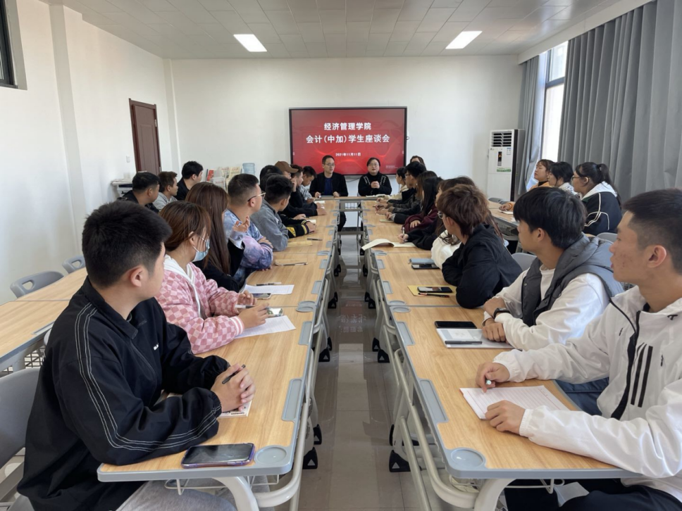 为进一步了解首届中外合作办学项目的管理水平和办学满意度,2021年11月11日下午,Beat365正版唯一官网必一召开了中外合作办学项目学生座谈会。Beat365正版唯一官网必一张召哲院长、李兆楠书记、学院办公室主任张晓凤、学院教务办主任柴芳芳、团总支书记聂蕴和与会计(中加)2101-2103三个班级的20余名班干部及学生代表参加了座谈会。同学们围绕课程设置、教学安排、课堂管理、课外活动、出国留学、升本就业、后勤服务等畅所欲言,老师们现场积极答疑解惑,座谈会气氛热烈。