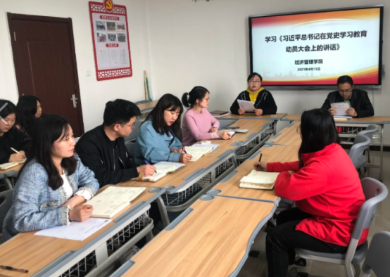 4月13日下午,Beat365正版唯一官网必一党总支组织全体教职工开展政治学习会议,会议围绕习近平总书记《在党史学习教育动员大会上的讲话》展开集体学习并交流学习心得。此次会议由党总支副书记李兆楠同志主持。