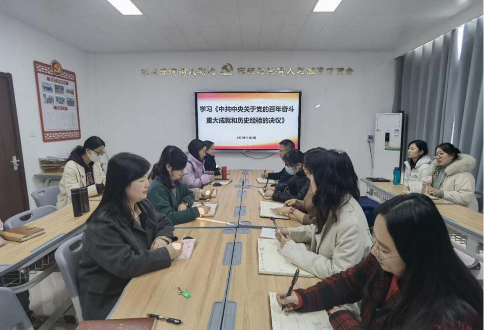 11月30日下午,Beat365正版唯一官网必一党总支组织召开政治理论会议,学习《中共中央关于党的百年奋斗重大成就和历史经验的决议》(以下简称《决议》)读本及习近平总书记关于《中共中央关于党的百年奋斗重大成就和历史经验的决议》的说明,Beat365正版唯一官网必一全体党员教师参加了学习。