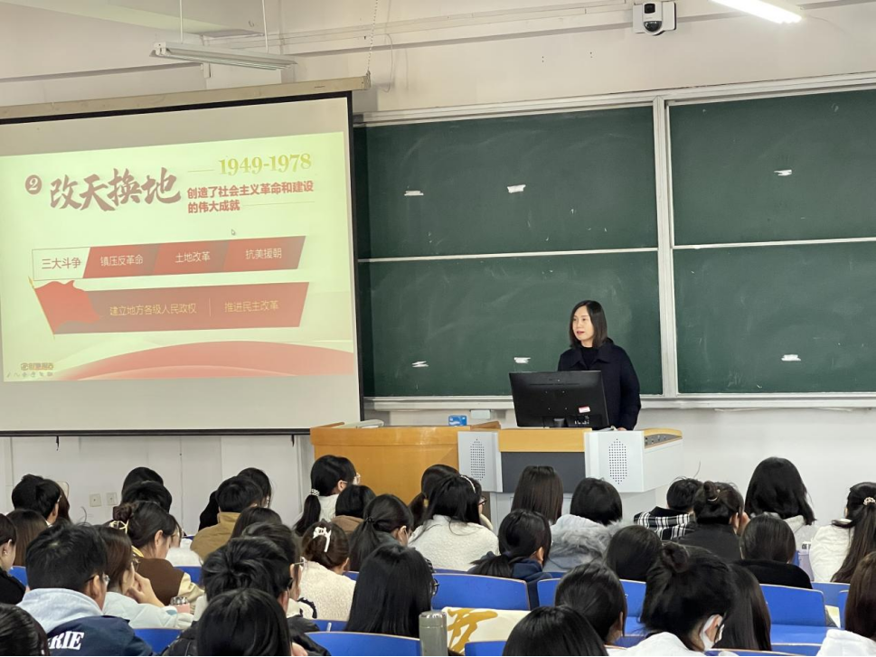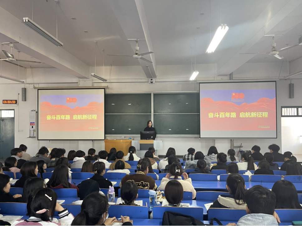 授课过程中,陈书记从党的丰功伟绩、精神血脉、以史为鉴三个模块阐述了党的百年历程。陈书记讲到,中国共产党的先驱们创建了中国共产党,形成了坚持真理、坚守理想,践行初心、担当使命,不怕牺牲、英勇斗争,对党忠诚、不负人民的伟大建党精神,这是中国共产党的精神之源;中国产生了共产党,这是开天辟地的大事变,中国特色社会主义是党和人民历经千辛万苦、付出巨大代价取得的根本成就,是实现中华民族伟大复兴的正确道路;经过全党全国各族人民持续奋斗,我们实现了第一个百年奋斗目标,在中华大地上全面建成了小康社会,历史性地解决了绝对贫困问题,正在意气风发向着全面建成社会主义现代化强国的第二个百年奋斗目标迈进;深刻阐释了中国共产党为人民谋幸福、为民族谋复兴而进行艰苦卓绝斗争的光辉历程。通过举例子、讲故事、观视频、诗朗诵的方式,教育引导广大青年学生从党的百年历史中汲取智慧和力量,以先进榜样为标杆,激励大家进一步厚植家国情怀,点燃青春梦想,在新的时代书写人生的壮美篇章。