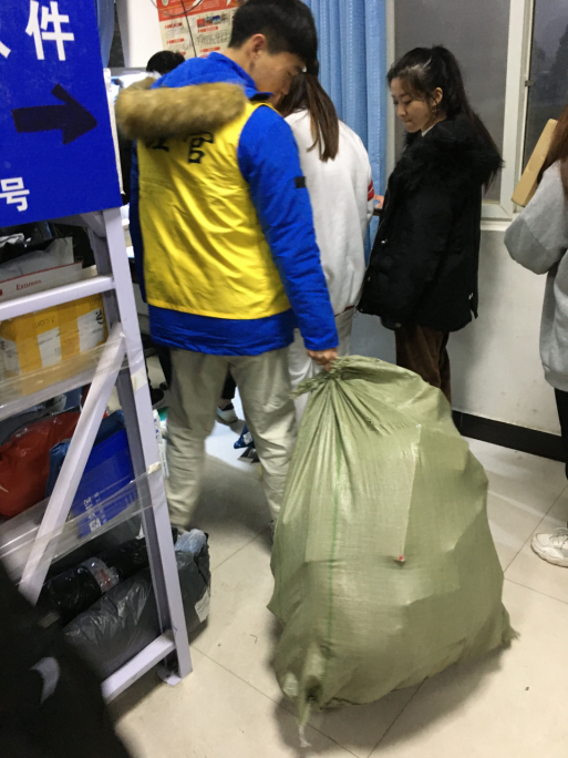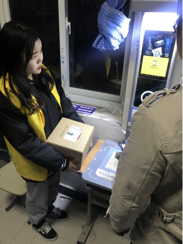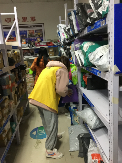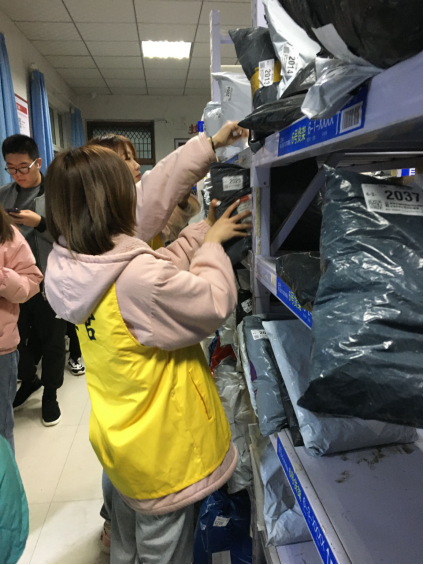 在提前与菜鸟驿站负责人协商整理收取快递时间后,志愿者轮流在课余时间去菜鸟驿站帮助菜鸟驿站的工作人员整理快递。在活动过程中,志愿者秉持着敬业的态度,与工作人员积极沟通,听从他们的安排,认真完成任务。