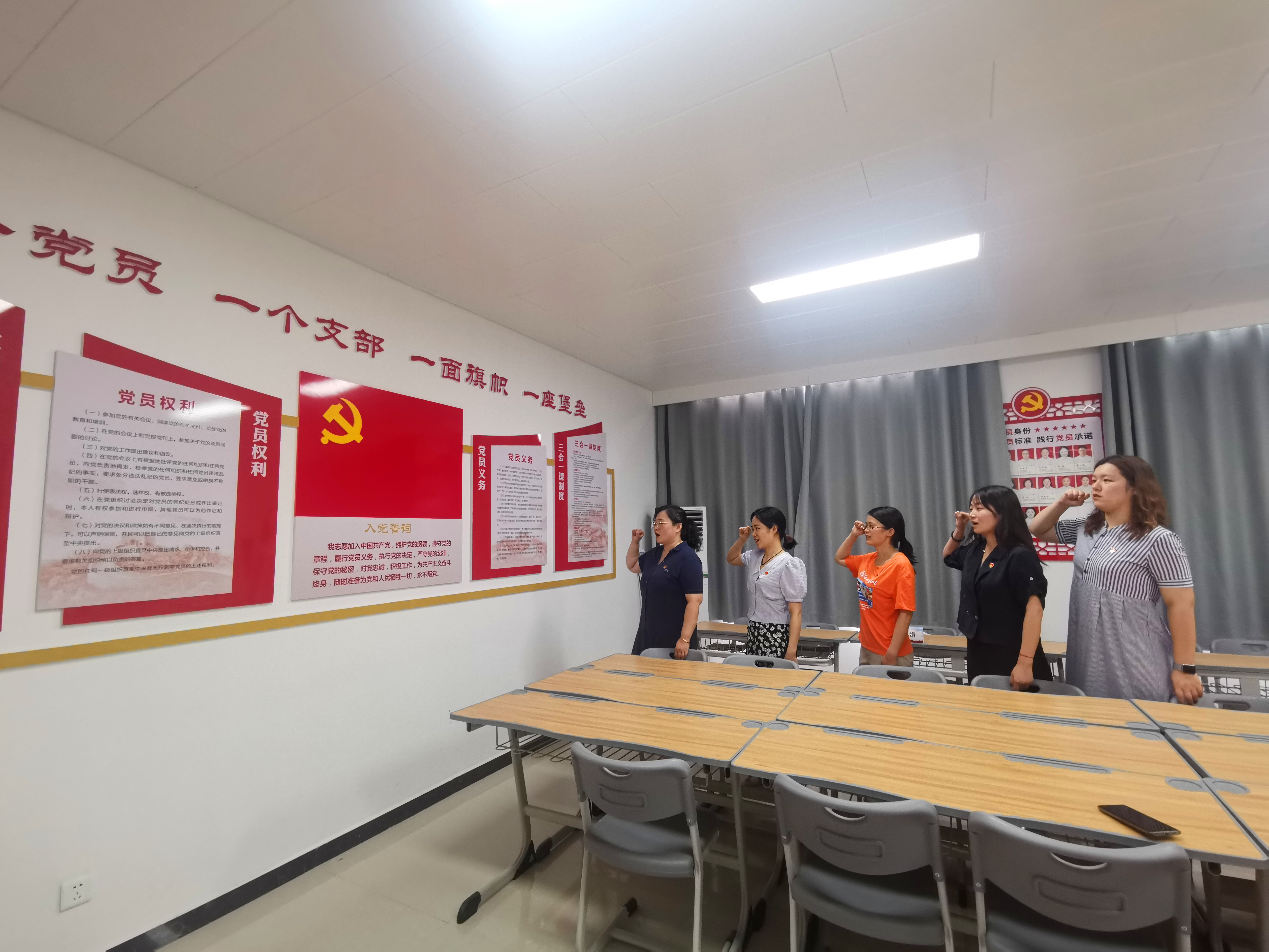 此次过“政治生日”的党员有李兆楠、凌端平、赵 静、张梨花、聂 蕴,公布完党员名单后,支部书记对这些同志致以贺词并赠送贺卡。随后,全体党员一起重温了入党誓词,举起右手,紧握拳头,庄严宣誓,牢记共产党员的政治责任和历史使命,以更加饱满的热情投身到工作岗位上,切实发挥共产党员的先锋模范作用。