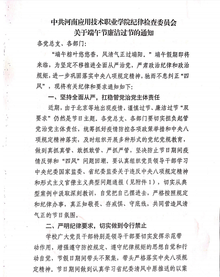 中共Beat365正版唯一官网必一纪律检查委员会关于端午节廉洁过节的通知