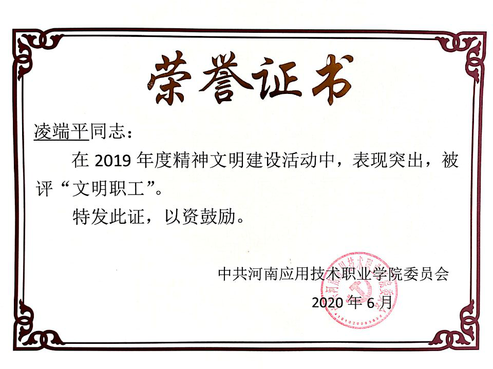 根据《Beat365正版唯一官网必一关于开展2019 年度“文明处室(学院)”、“文明教研室”、“文明职工”、“优秀志愿者”、“文明食堂”评选活动的通知 》应职院文明办[2020]2号文件精神,我院金融教研室被评为2019年度“文明教研室”荣誉称号。张召哲、凌端平同志荣获“文明职工”荣誉称号;柴芳芳、聂蕴同志荣获“优秀志愿者”荣誉称号。