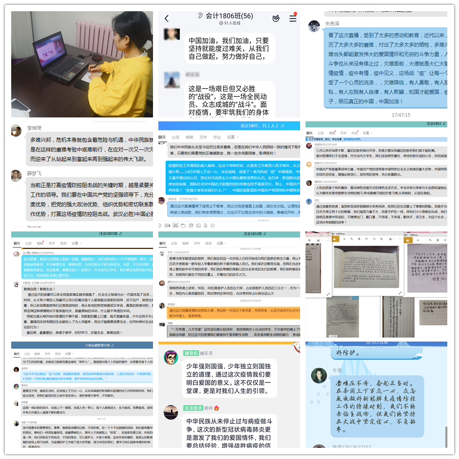 疫情当前,我们不仅仅有医疗战线和国家政府的大力防控,更有高校教育工作者的全军出击,他们日以继夜,白天关注统计学生健康异动情况,晚上继续伏案挑灯备课,挂念着身处各地的学生们,他们是一群可敬之人,更是可爱之人。今日之中国,有着无数身怀大爱的人和职业,他们用满腔的爱国热情在无私的奉献,相信在我党的正确领导下,中国必胜!