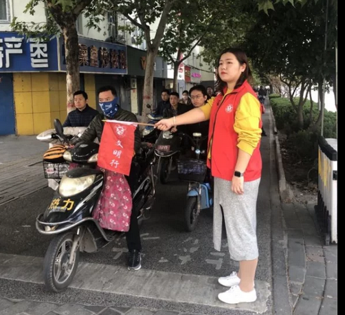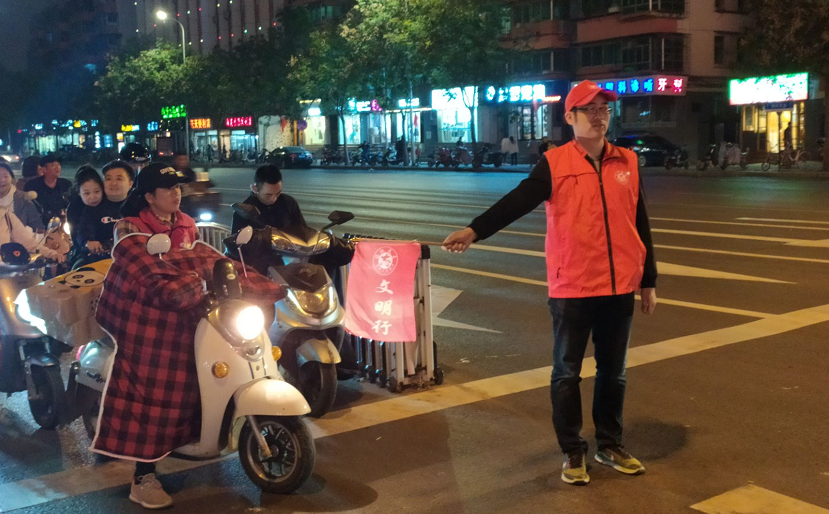 党员志愿者身穿红色志愿服,手持文明交通旗,参与到路口站岗执勤,维持交通秩序的工作。志愿者对横穿马路、乱闯红灯等违反交通规则的行人进行了劝阻提醒,纠正其不文明行为,教育、引导市民遵守交通法规,同时志愿者们还热心地为路人解答疑问,耐心指路。