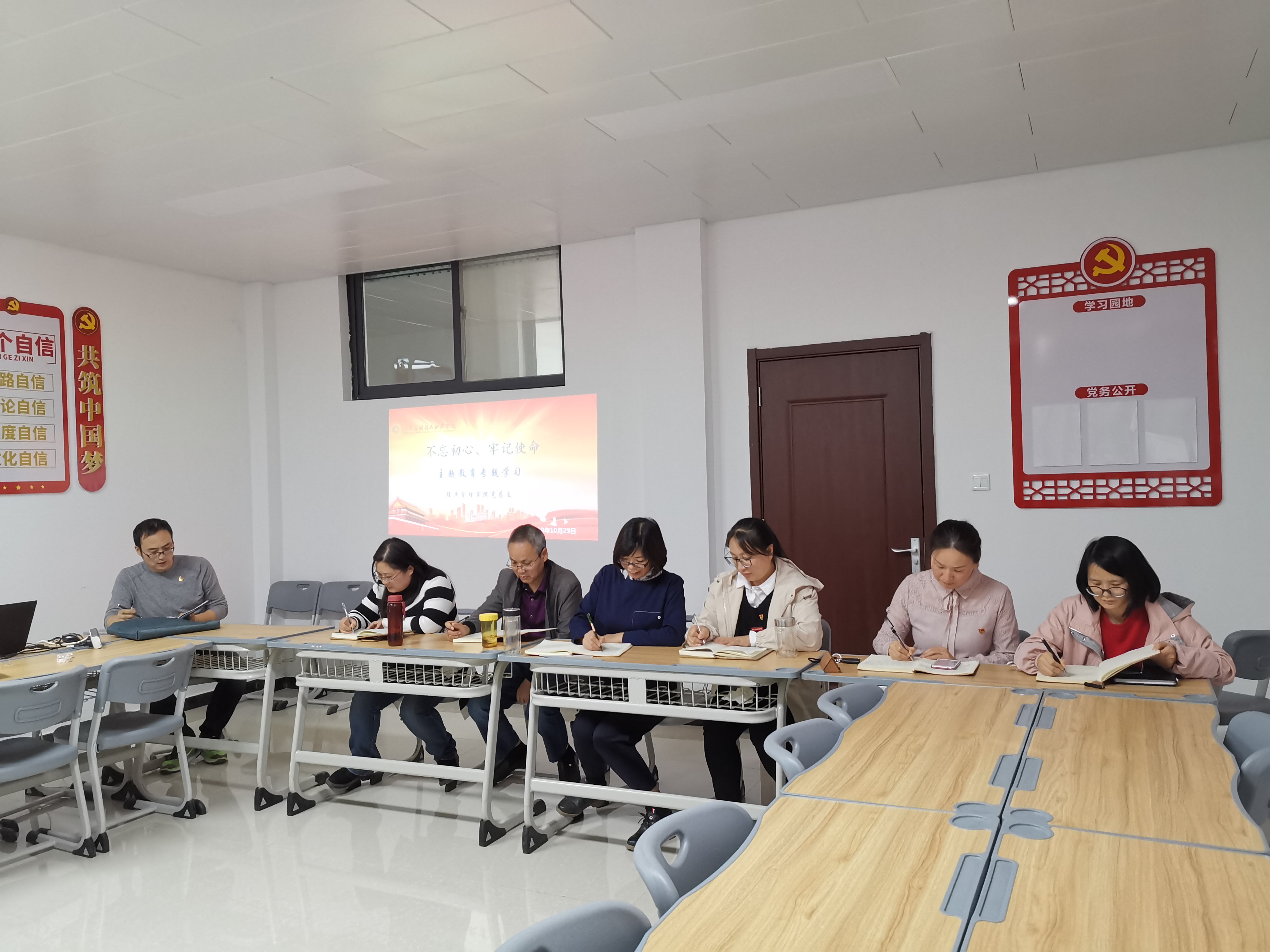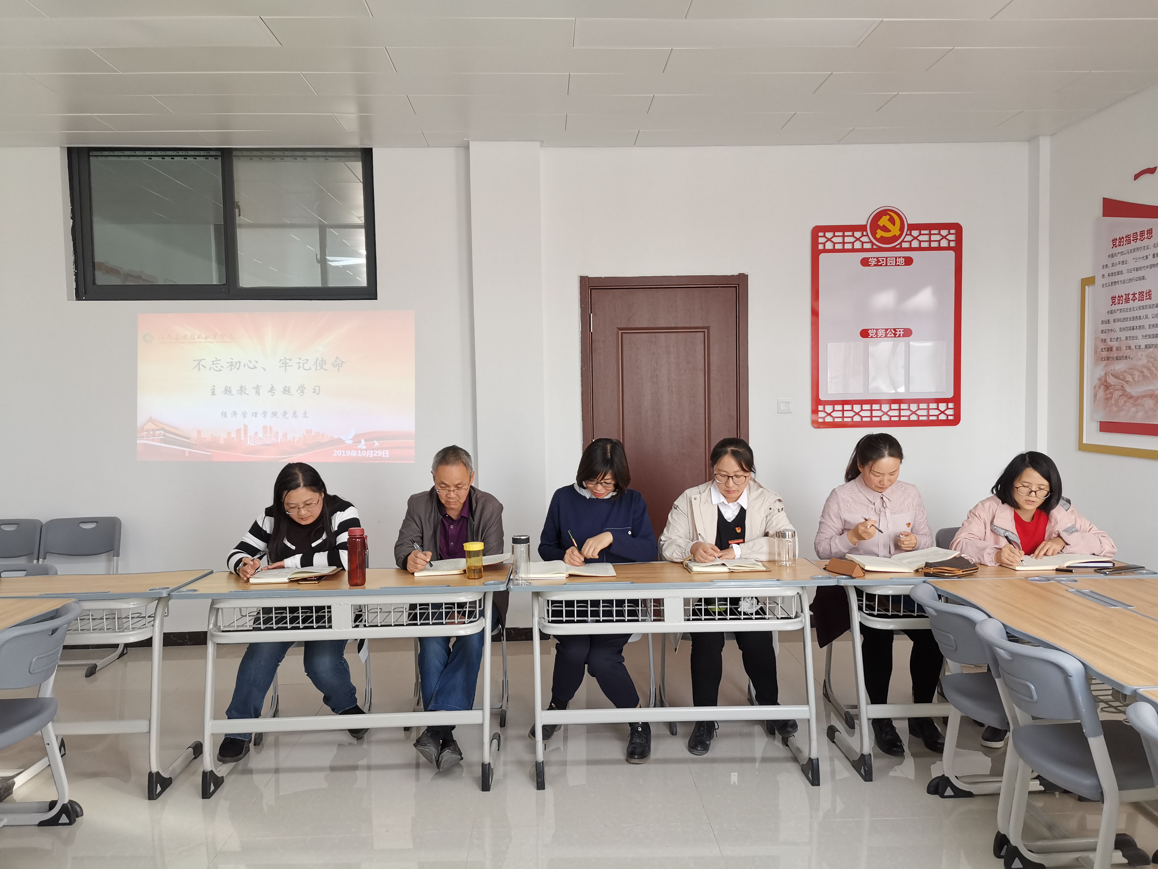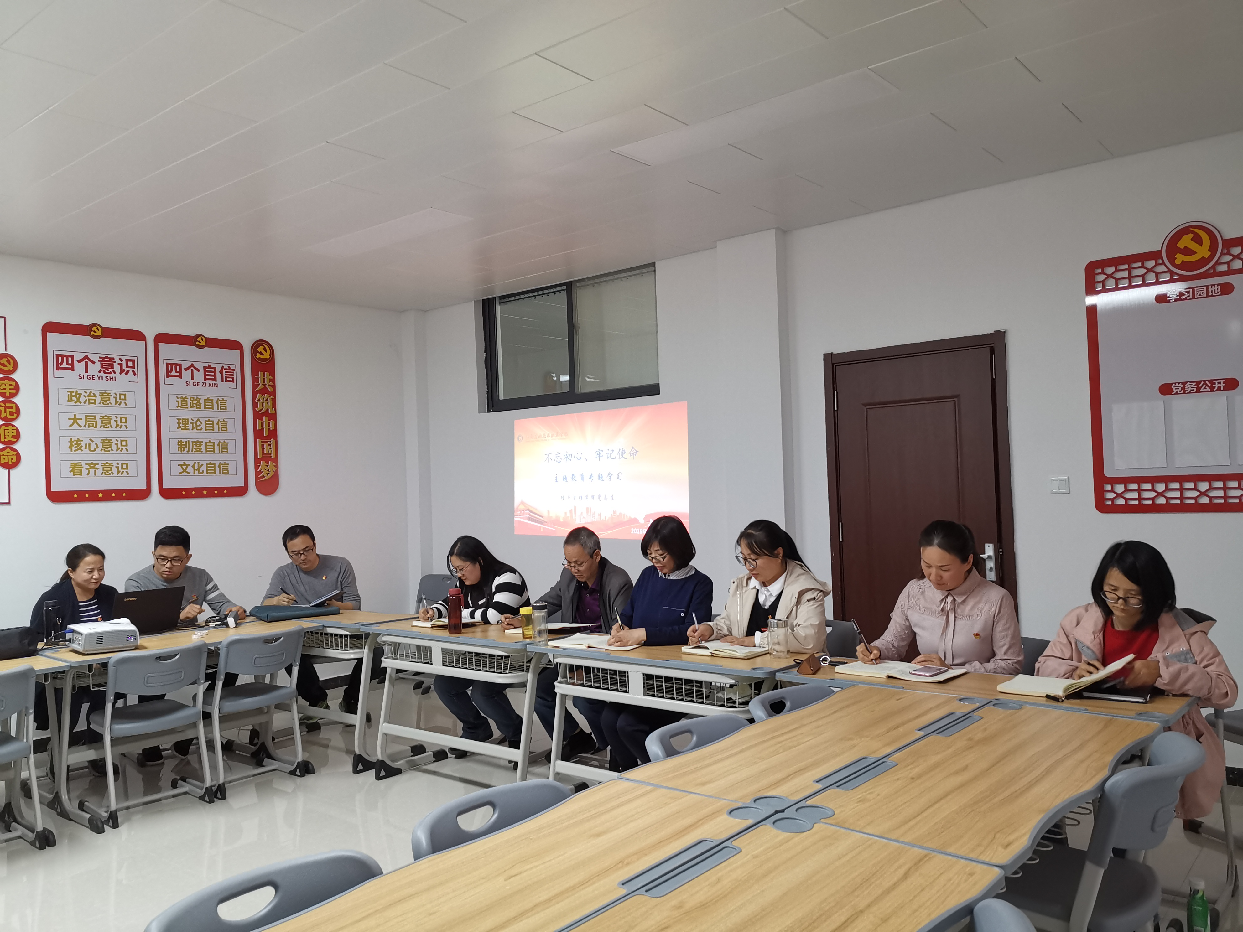 2019年10月29日下午,Beat365正版唯一官网必一党总支在办公楼505进行“不忘初心、牢记使命”主题教育第六专题“强化党的政治纪律和政治规矩”和第七专题“加强党性修养”的集中学习研讨,学习由教工支部书记张召哲老师主持,全体党员教师参与本次学习研讨。