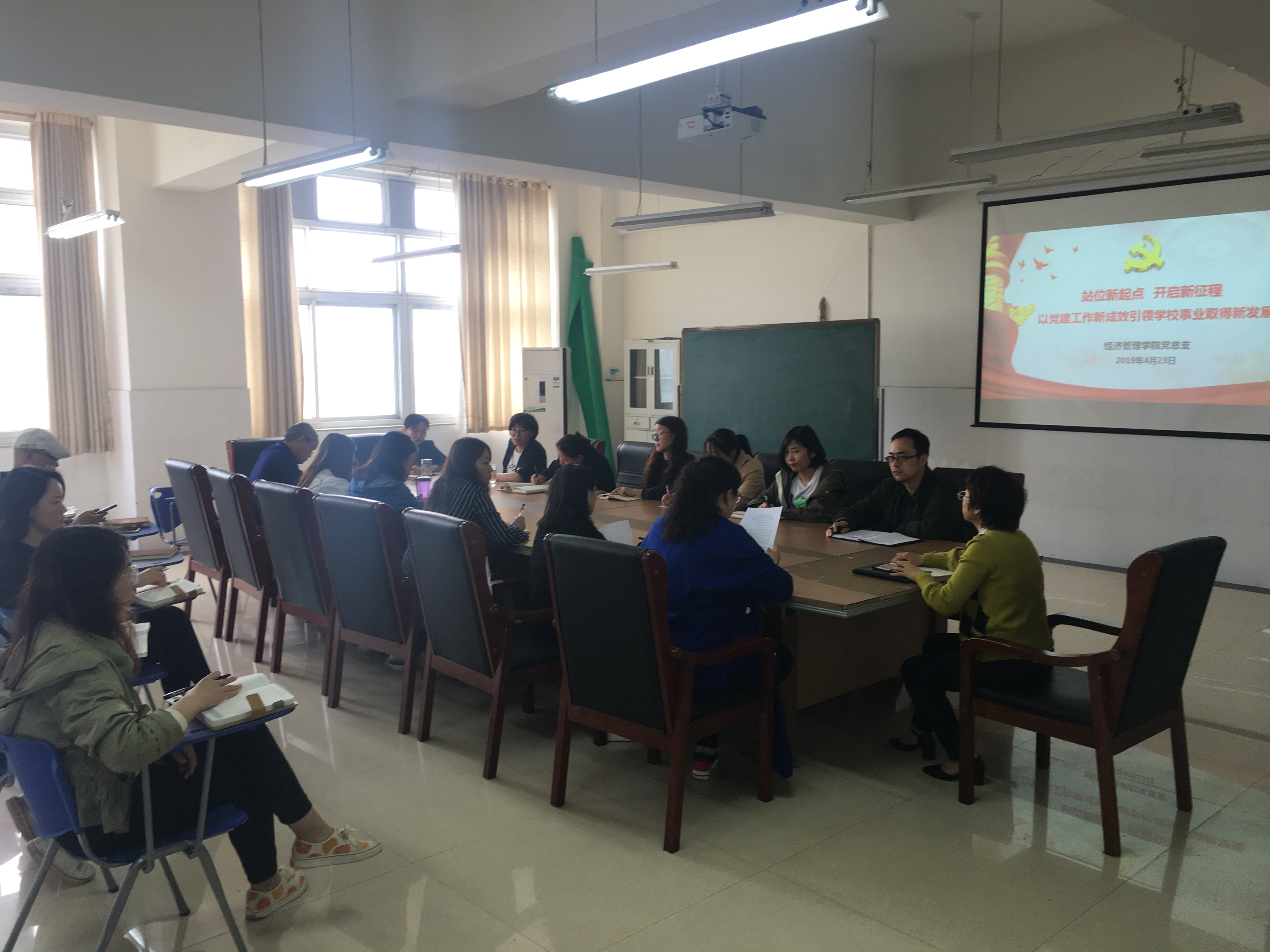 2019年4月23日下午,Beat365正版唯一官网必一党总支在学校党委的统一部署安排下,组织全体党员及教师开展了政治理论学习会议。会议由Beat365正版唯一官网必一党总支书记袁清香同志主持,党总支副书记李兆楠同志领学。