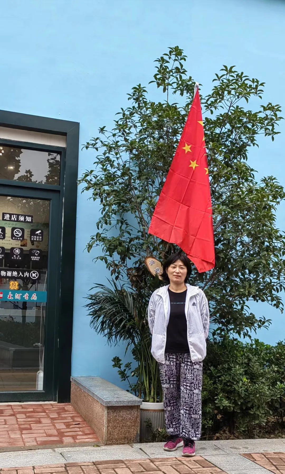 与国旗合影