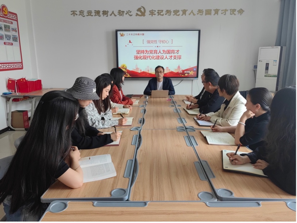 张召哲同志以“为党育人、为国育才,强化现代化建设人才支撑”为题进行系统和深入的解读,并密切结合学校发展近况、成绩和党员政治、思想、工作、纪律、生活实际,同与会人员就如何贯彻落实“为党育人、为国育才”进行了交流感悟分享,对全院党员教师提出了明确具体的要求。