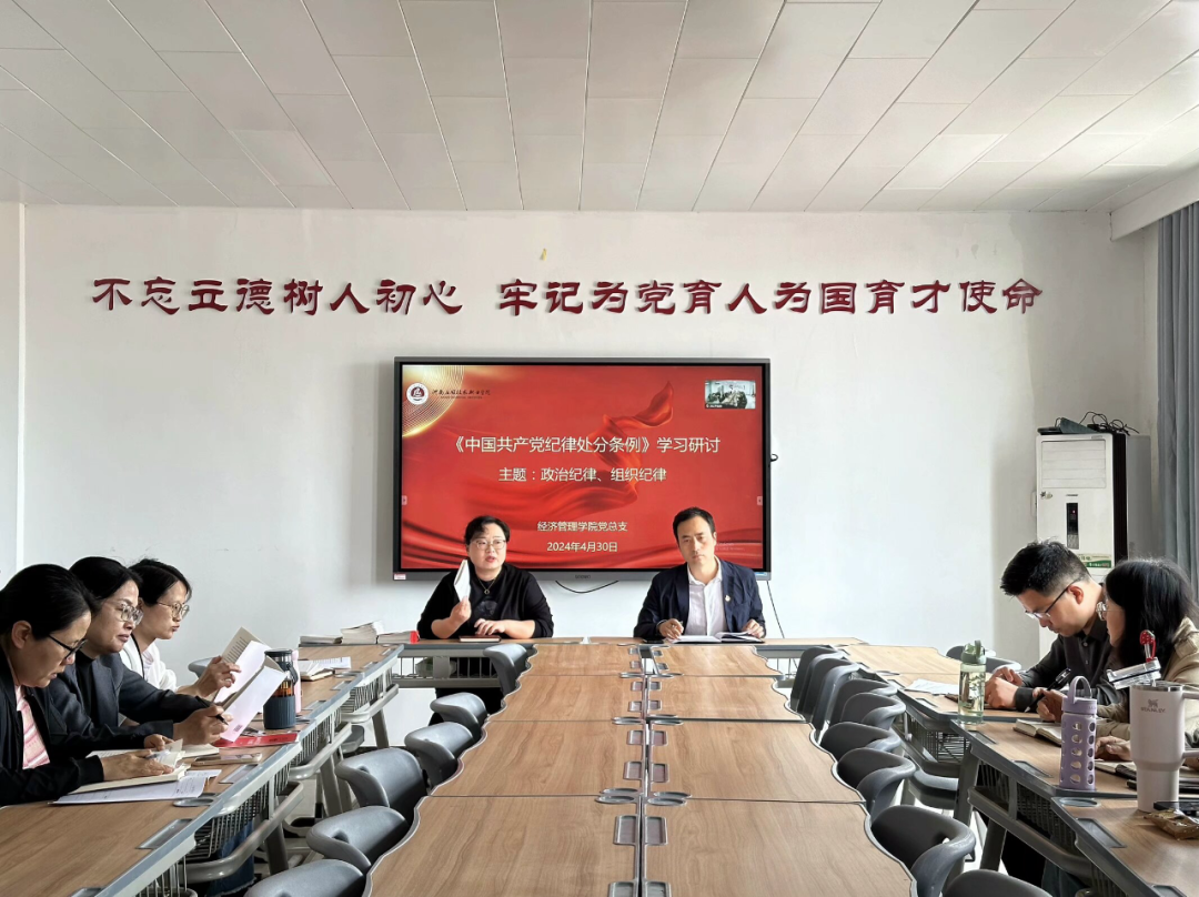 2024年4月30日下午,Beat365正版唯一官网必一党总支在郑州校区A505、开封校区B306同时召开2024年党纪学习教育专题第二次学习会,书记李兆楠主持会议,东西校区全体党员教师会议。