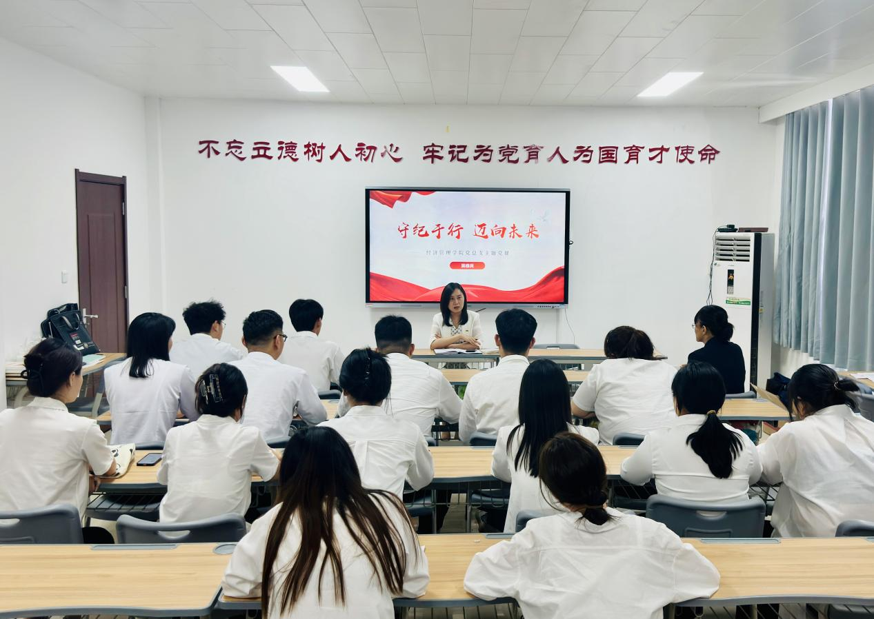 为推动党纪学习教育走深走实,引导毕业生党员学纪、知纪、明纪、守纪,近日,校纪委书记陈雅莉在A505为Beat365正版唯一官网必一毕业生党员讲授“守纪于行 迈向未来”专题党课。副书记王盼红主持学习会。