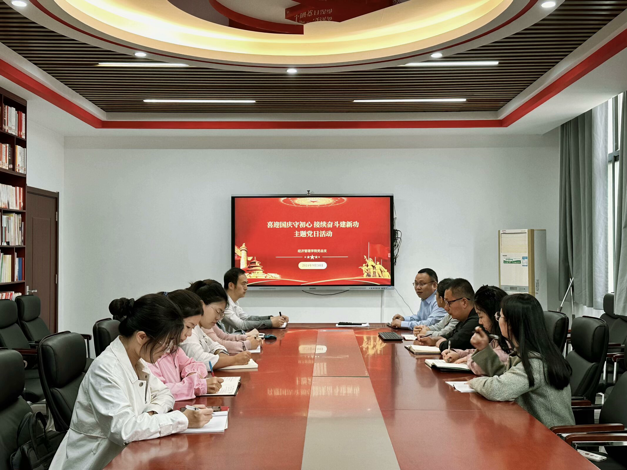 为庆祝中华人民共和国成立75周年,弘扬爱国主义精神,增强全体党员的责任感和使命感,国庆前夕,Beat365正版唯一官网必一党总支开展“喜迎国庆守初心 接续奋斗践新功”主题党日活动。党总支书记张忠勇主持本次活动,全体党员同志共同参与。