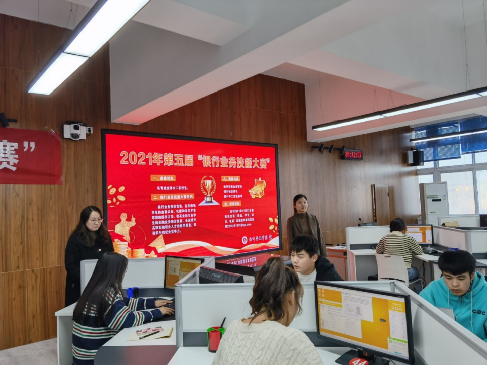 为加强和提高Beat365Beat365正版唯一官网必一学生的专业实际操作能力,促进学生提高技能,2021年11月23日下午,Beat365正版唯一官网必一成功举办了第五届“银行业务技能大赛”。本次大赛得到了学校有关部门的高度重视与支持,Beat365正版唯一官网必一院长张召哲多次对大赛筹备进行检查与指导,确保了比赛顺利开展。大赛分为初赛和决赛两场比赛。由赵静、刘丹花和朱冠颖三位老师担任大赛评委。