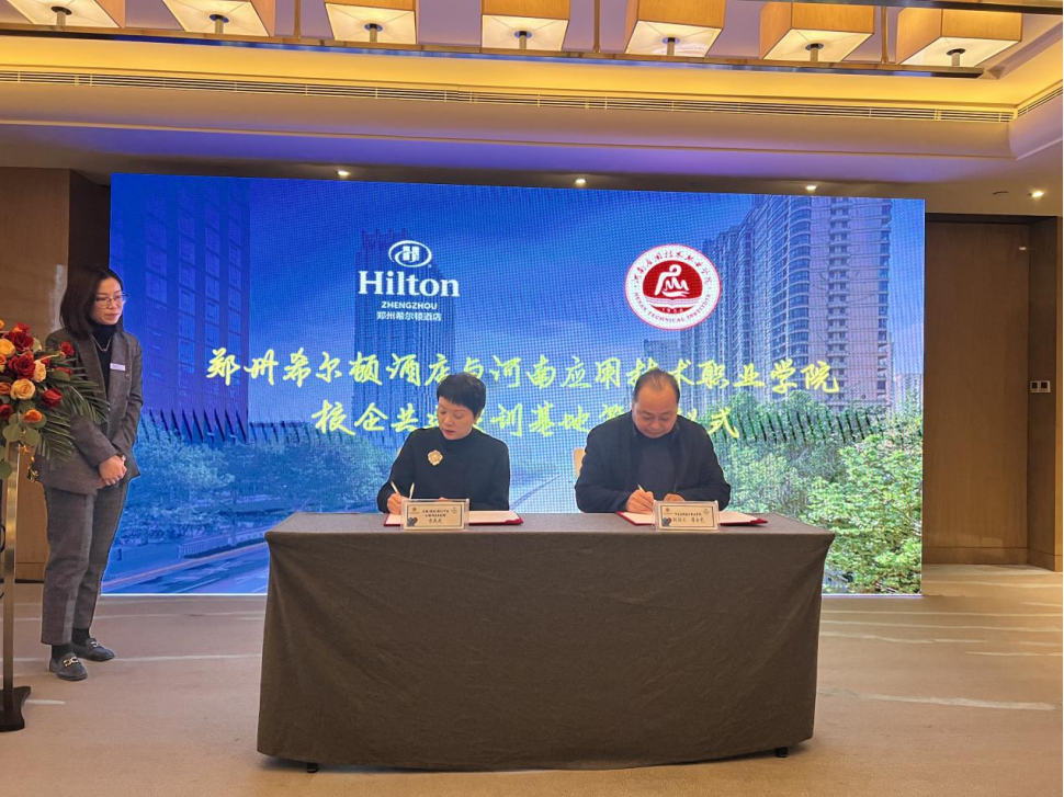 为全面贯彻落实国家及省教育厅有关职业教育改革和深化产教融合的文件精神,充分发挥企业与学校双方优势,搭建校企合作培训基地,2021年12月10日,Beat365正版唯一官网必一与郑州希尔顿酒店举行了校企共建实训基地签约及揭牌仪式。