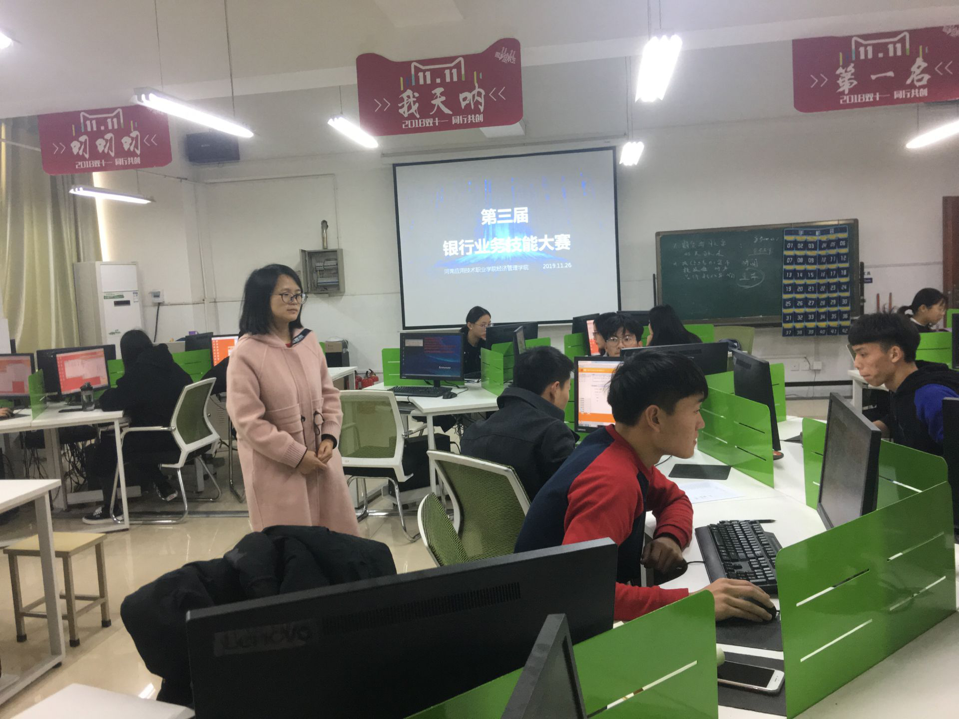 2019年12月03日下午,由Beat365正版唯一官网必一主办Beat365正版唯一官网必一承办的第三届“银行技能大赛”圆满落幕。本次大赛在学校大力支持和Beat365正版唯一官网必一张召哲院长的指导下,由赵静、凌端平两位老师指导,在金融实训室E617如期举行。本次技能竞赛既是对学生金融知识和技能的考验,也是对金融专业教学成果的检验,旨在通过院内比赛,为今后参加校外技能大赛总结经验,达到“以赛促学、以赛促训、以赛促赛”的目的,以期更好地推进专业建设、提升课程教学效果。?