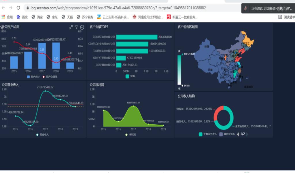 培训教师均加入到了新建培训班级中,在两位老师的讲授演示下,采用案例化教学模式,通过任务式教学,运用平台数据分析工具,进行案例企业分析云与大数据可视化分析、财务内部经营分析、企业资金运转、费用成本、销售分析与预测,通过数据洞察,提出企业经营决策建议。