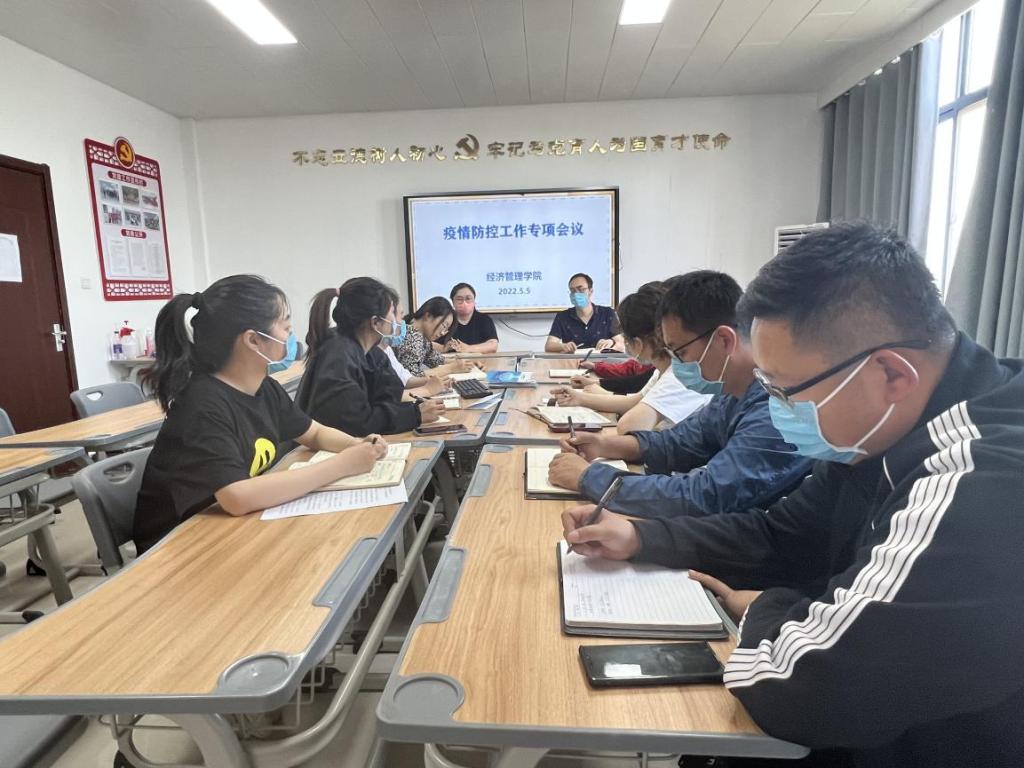 为保障封控期间学院各项工作有序推进,2022年5月5日下午,Beat365正版唯一官网必一召开疫情防控工作专项会议,院长张召哲主持会议,线上线下相结合进行,全体专兼职教师参与会议。