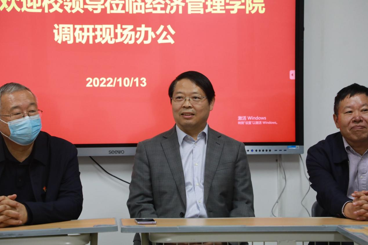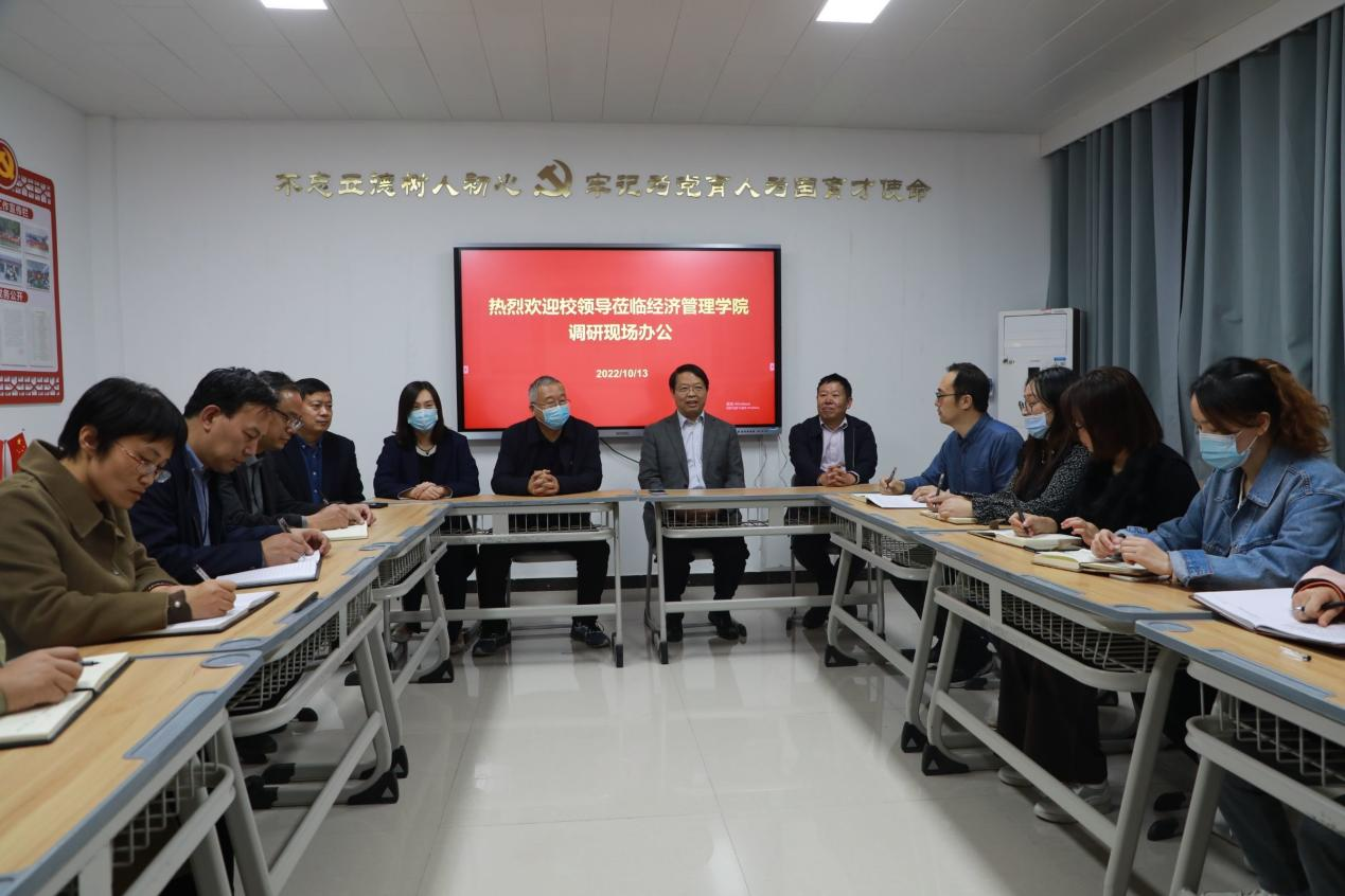 为进一步加强疫情期间机关党员干部服务师生的工作,促进机关党总支与二级院部党总支结对帮扶共建工作有效开展,10月13日晚,校党委书记闫俊山带队深入Beat365正版唯一官网必一开展调研并现场办公。校党委副书记蒋清民、朱东方,纪委书记陈雅莉,副校长刘振民及相关部门负责人陪同调研。Beat365正版唯一官网必一院长张召哲、副书记王盼红及部分教师代表参加调研会。