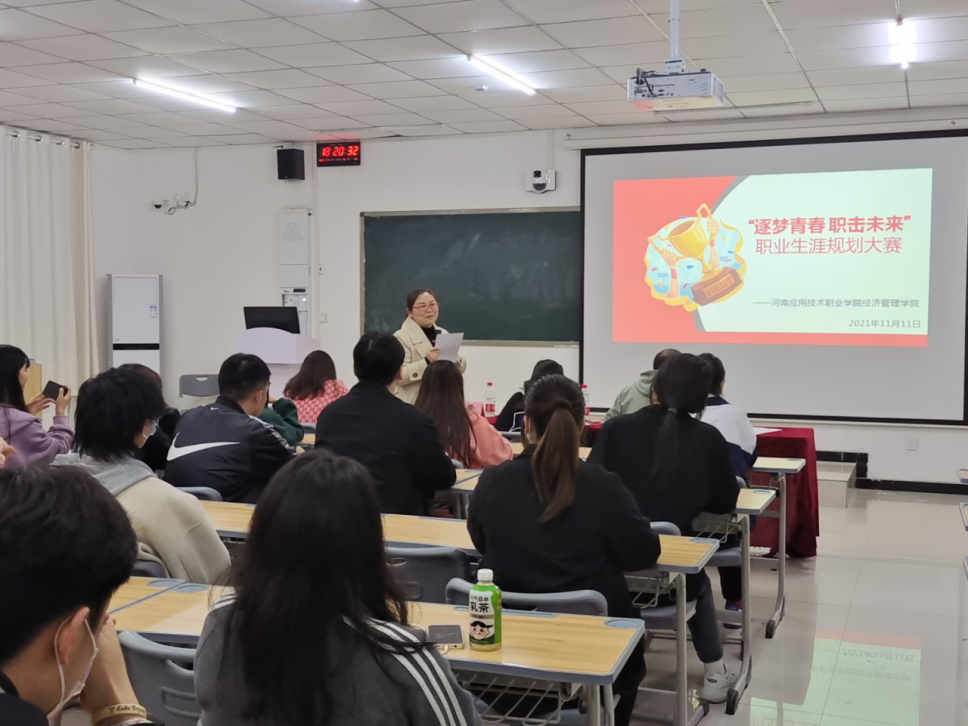 为贯彻落实党中央、国务院“稳就业”、“保就业”决策部署,响应教育部要求的进一步完善高校毕业生就业支持体系,引导学生树立正确的成才观、就业观和价值观,科学规划职业生涯,进一步明晰职业发展目标。2021年11月11日下午,Beat365正版唯一官网必一在教学楼102举办“逐梦青春 ‘职’击未来”职业生涯规划大赛。就业指导中心主任张万伦老师、招生就业处姬彦红老师、Beat365正版唯一官网必一办公室主任张晓凤老师、团总支书记聂蕴老师担任评委。