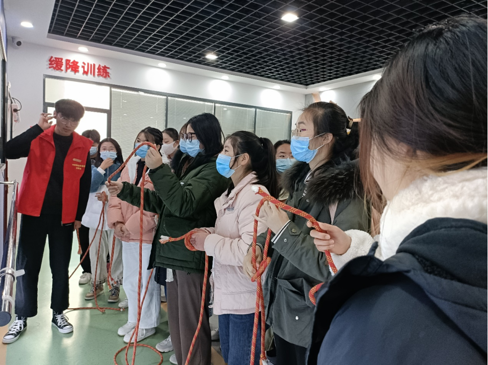 安全体验馆共有六大体验区,分别是:消防安全体验区、VR自然灾害逃生体验区、电气安全体验区、逃生安全体验区、地震灾害倾斜小屋体验区、现场急救体验区。在VR自然灾害逃生体验区,同学们纷纷排队依次体验VR技术带来的视觉震撼;电气安全体验区,同学们争先恐后的伸出手指去感受触电的模拟效果;现场急救体验区中,专业急救人员积极且细心传授专业急救知识,鼓励学生实际操作,切实掌握急救技能,并传授同学们结绳的技巧,提醒广大学生在突发情况下要保持沉着冷静;在消防安全逃生体验中,专业老师传授灭火知识,并让部分同学体验灭火设施的使用,掌握火灾现场营救的基本技能,提升对火灾的预防能力。