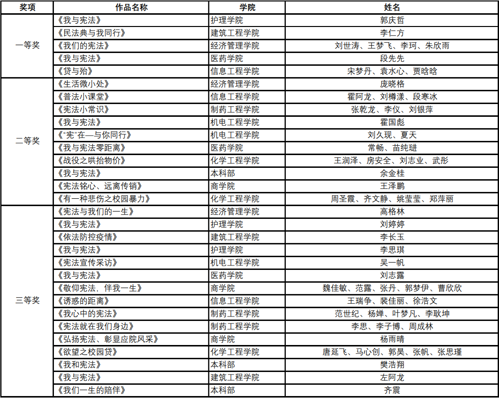 “我与宪法”微视频大赛获奖名单