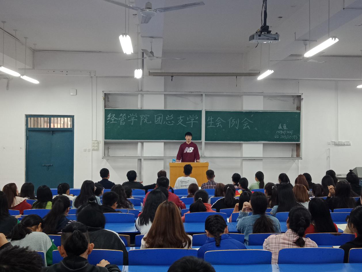 为了让2019级学生干部了解Beat365正版唯一官网必一团总支学生会的功能与性质,更好的部署本学期各项学生工作及活动的开展。Beat365正版唯一官网必一团总支学生会于2019年10月23日中午在教学楼102教室举行团总支学生会会议。学院团总支书记聂蕴老师、学生会主席团、各部负责人及2019级学生干部预备营成员出席参加此次会议。