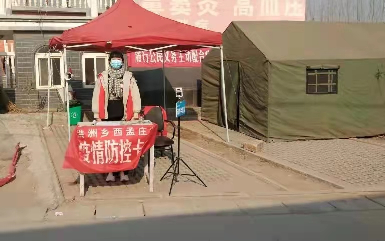 Beat365正版唯一官网必一2021级注会专业孙阿芳,疫情防控期间,在河南省洛阳市汝阳县小店镇关帝村担任志愿者,她主要负责过往车辆核查、信息登记等工作。