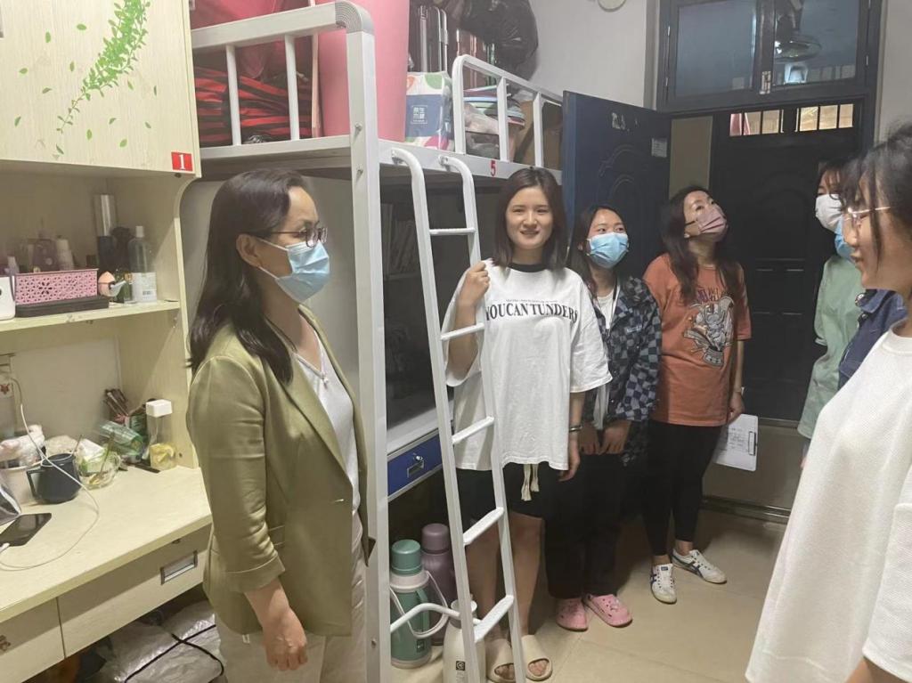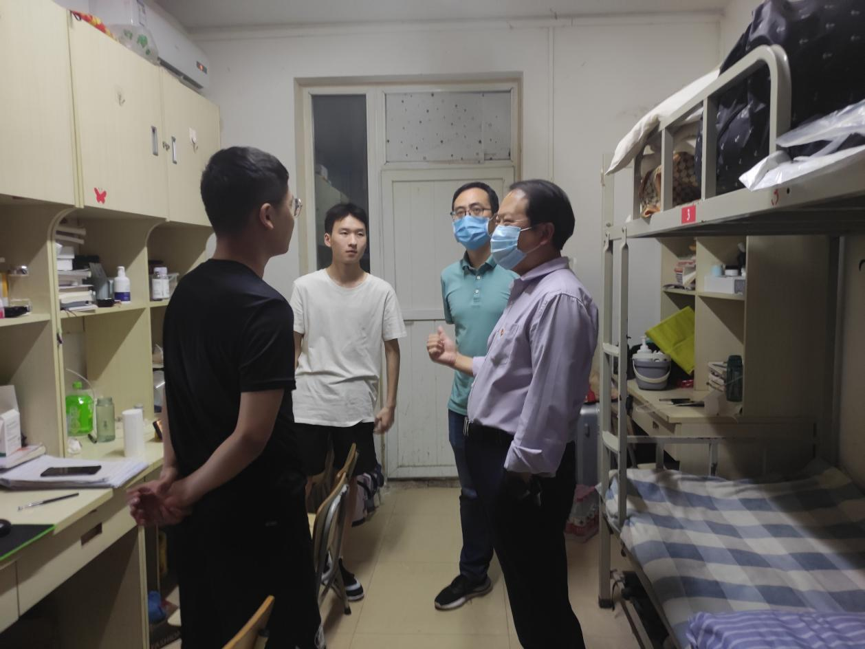 疫情防控特殊时期,为进一步关心慰问学生,打赢疫情防控阻击战,5月5日晚,副校长陈君丽、党委委员组织部部长常新中走访Beat365正版唯一官网必一学生宿舍。