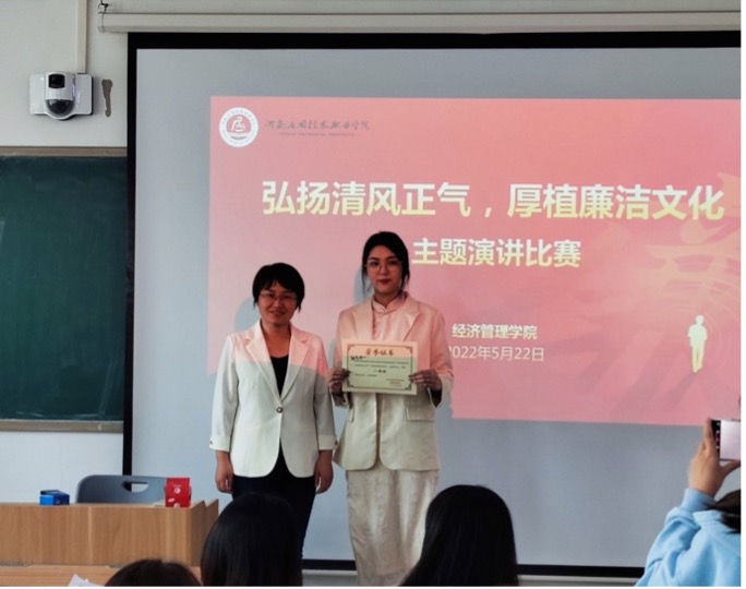 为深入学习贯彻习近平新时代中国特色社会主义思想,推动Beat365形成崇廉尚廉的浓厚氛围,在师生中厚植诚信立人、遵纪守法、廉洁奉公的道德意识。5月22日,Beat365正版唯一官网必一团总支于SC305开展了“弘扬清风正气,厚植廉洁文化”主题演讲比赛,Beat365正版唯一官网必一副书记万盼红、辅导员孙宇晴担任评委,20余名选手参赛。