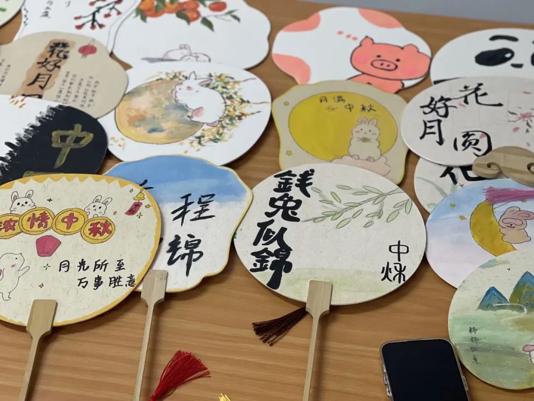 同学们充分展现了自己的创意和艺术天赋。在扇子上绘出只只皎洁玉兔,于宫灯之上绽出朵朵幽香桂花.....学生深刻了解了人类优秀文化的共性和追求美好生活的共同信念。同学们把自己对中秋的祝福和思念化为文字。每个人都用心地书写自己喜爱的中秋诗词,将其制成书签,这不仅是对传统文化的憧憬,也是对中秋节的真挚表达。