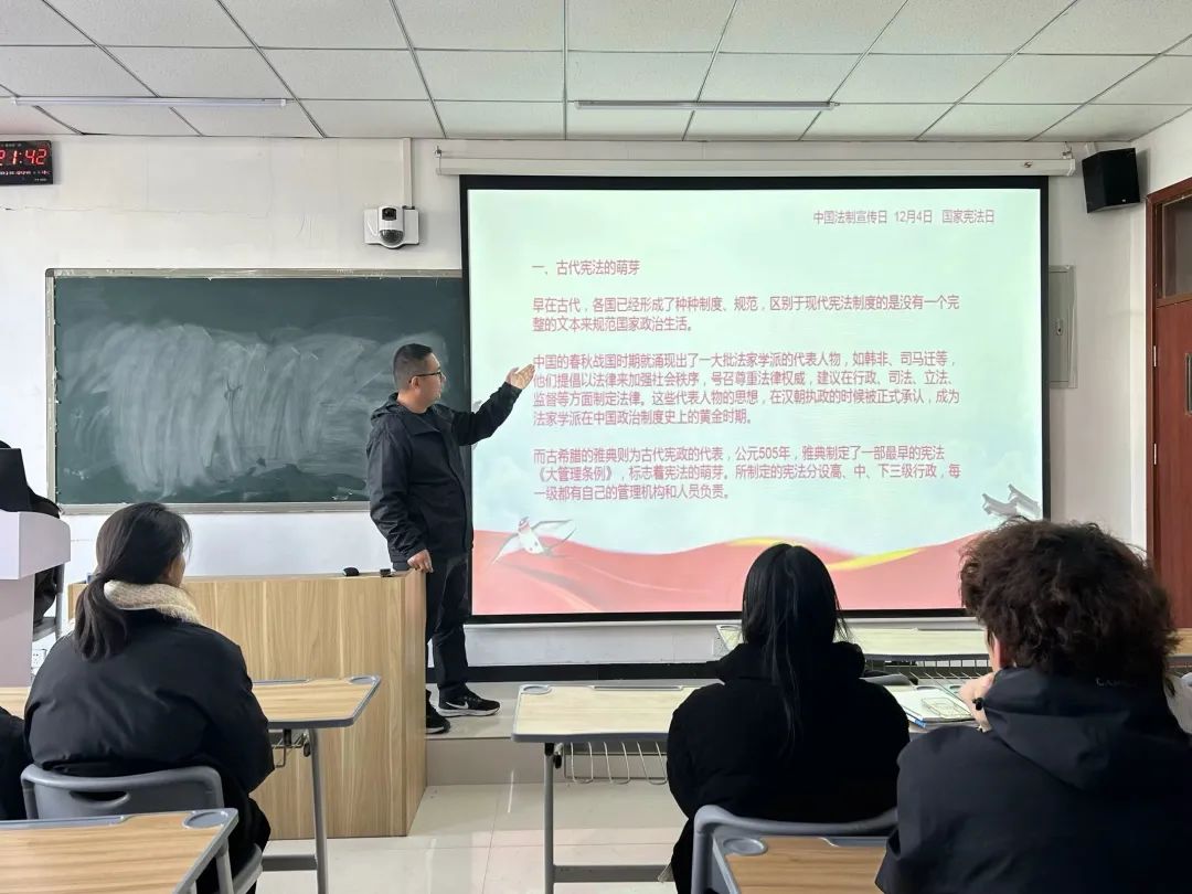 在“宪法宣传周”期间,各班团支书开展“学宪法 讲宪法”主题团课。宪法是国家的根本大法,学宪法讲宪法是大学生的必修课。通过讲解宪法的地位、作用、修订、更新的过程,强调宪法在生活中的重要作用,宣传宪法精神和习近平法治思想,号召大家主动学习宪法、自觉捍卫宪法、弘扬宪法精神,为社会主义和谐社会建设做出应有贡献。