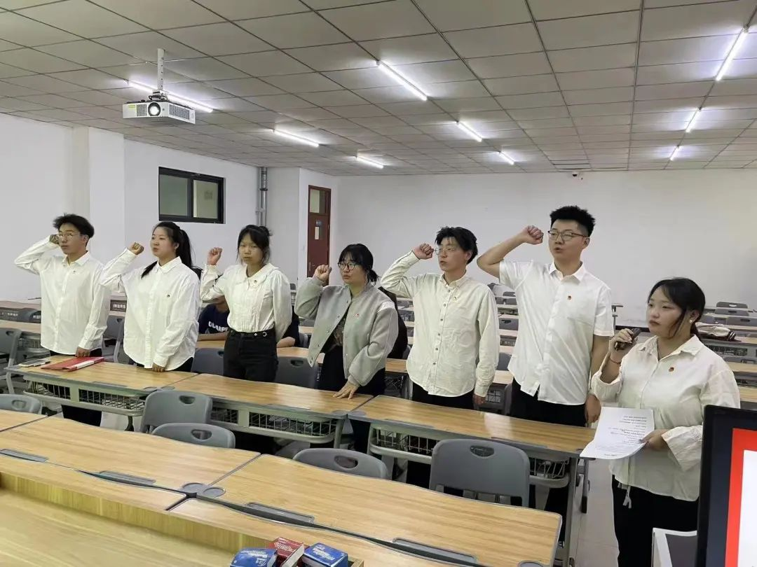 为充分发挥团组织教育青年功能,加大对新时代青年培养力度,凝聚中国共产主义青年团新力量,2024年4月29日,在郑州校区sc504、开封校区A102,Beat365正版唯一官网必一举办2024年新团员入团仪式。团总支书记李天泽、郑州校区团学会负责老师孙宇晴及新老团员参加入团仪式。