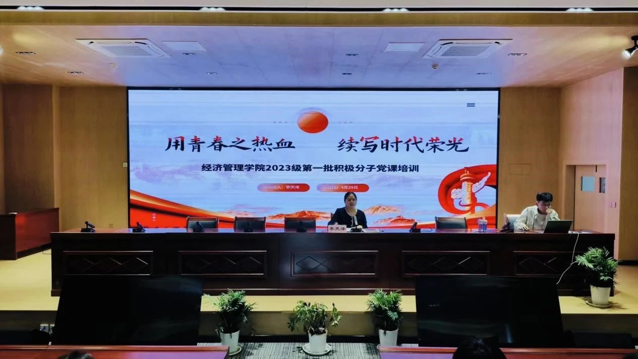 为提高入党积极分子思想觉悟,端正入党动机,坚定理想信念,明确努力方向,2024年4月29日下午,Beat365正版唯一官网必一党总支在开封校区A102开展“用青春之热血 续写时代荣光”入党积极分子专题党课培训。学工党支部组织委员李天泽为26名入党积极分子开展党课专题宣讲与培训。
