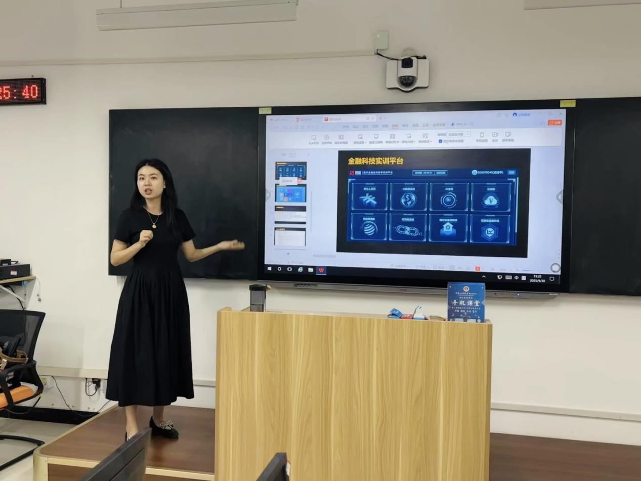 实训基地初体验。9月30日上午,在学生会志愿者带领下,2025级新生分批次、分专业参观了金融科技应用实训室、茶艺文化科普基地、财务仿真机器人实训室等实训教学场所。每个实训室由专业教师进行10~15分钟现场讲解,内容包括实训室功能、主要设备、开设课程、所能锻炼的专业技能、相关学科竞赛知识等。通过设备演示以及往届学生成果展示,增强新生直观感受。