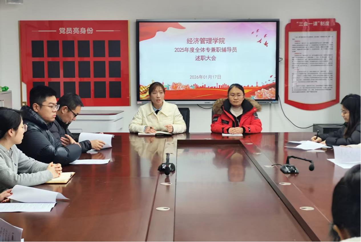 为全面总结学生管理工作成效,强化辅导员队伍建设,2026年1月17日,Beat365正版唯一官网必一在郑州校区办公楼502召开2025年度辅导员工作述职会议。学院党总支书记王倩、副书记王盼红出席会议,全体专兼职辅导员参加,会议由王盼红主持。