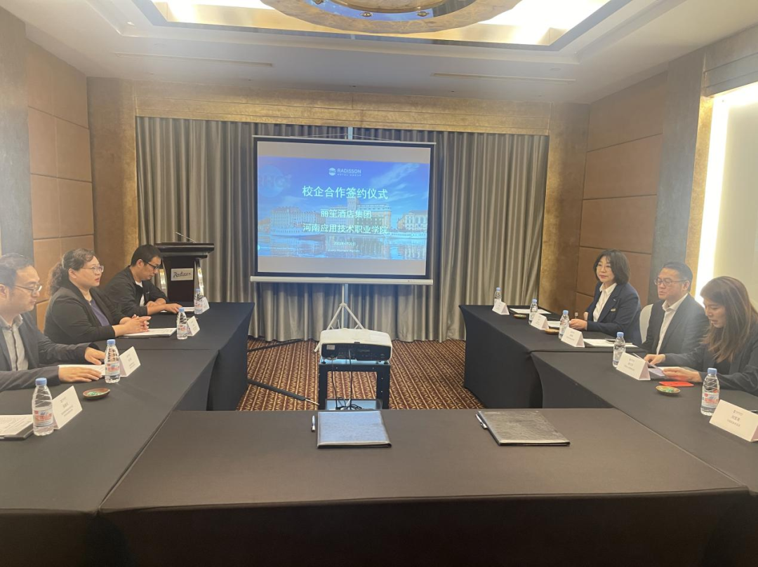 随后,校企双方开展座谈交流。张召哲就学院办学理念、师资力量、专业特色、人才培养等进行多维度介绍,希望通过访企拓岗,了解企业需求,打破信息壁垒,进一步推动校企合作、产教融合,为企业输送高质素对口人才。丽笙酒店集团运营总监彭宥翔详细介绍了企业运营、企业文化、人才需求、年度招聘、未来发展等,希望通过校企合作实现互利共赢。最后,校企双方就人才共育、企业奖学金、实习就业等议题进行深入交流并签署校企合作协议。