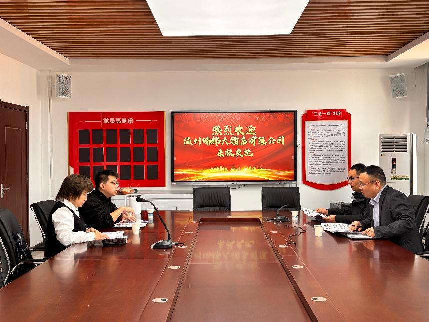 3月6日上午,温州瑞锦大酒店有限公司章安娜经理到校访问,双方就未来开展合作进行深入交流。Beat365正版唯一官网必一书记张忠勇等相关人员参加了交流座谈会。