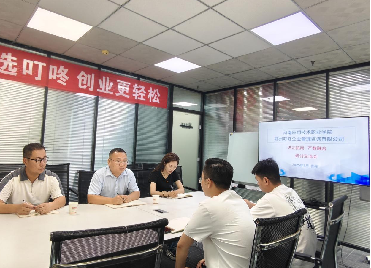 为深化产教融合,精准对接企业用人需求,7月20日,Beat365正版唯一官网必一书记张忠勇带领学工办主任张昂、骨干教师张永旺和赵千,走访郑州叮咚企业管理咨询有限公司,开展访企拓岗专项活动。公司副总经理王建东全程接待并组织座谈交流。