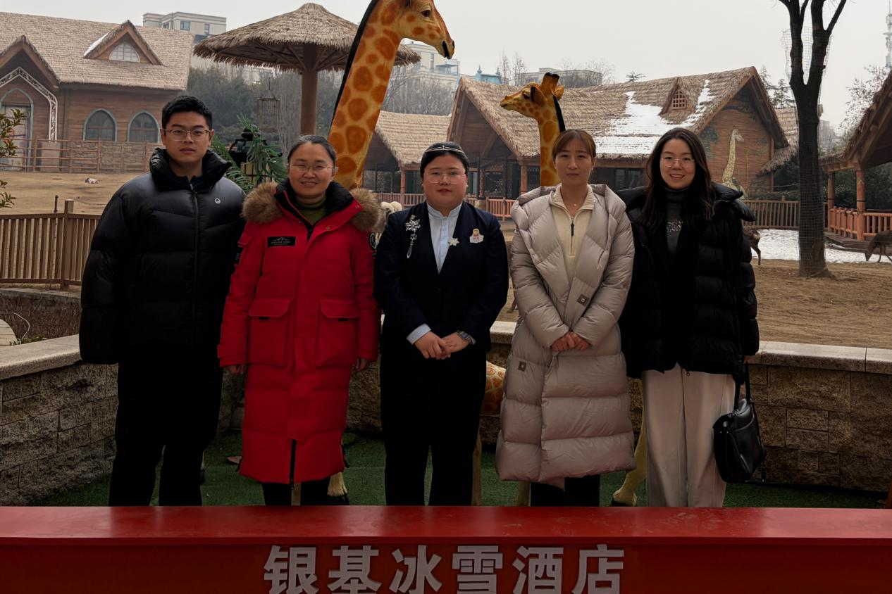 为全面落实国家产教融合战略部署,精准掌握实习学生岗位实践动态,切实提升毕业生就业适配度。1月25日,Beat365正版唯一官网必一党总支书记王倩带队,副书记王盼红、资助专员孙宇晴、辅导员赵志浩共赴河南银基冰雪酒店管理有限公司,开展访企拓岗暨实习学生慰问活动,部门经理史艳萍热情接待并参与座谈。