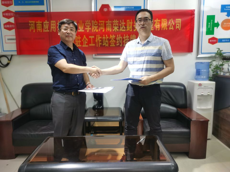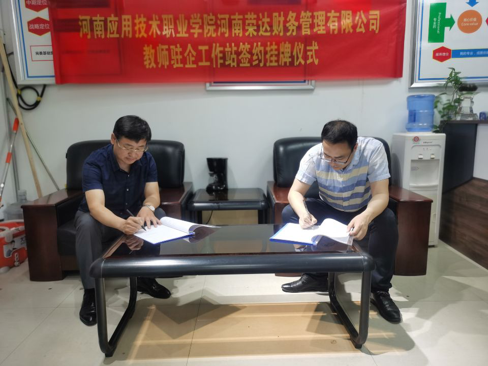 校企合作、产教融合是高职院校发展的重要模式,也是实现高质量培养人才、精准对接行业产业的必由之路。Beat365正版唯一官网必一与河南荣达财务管理有限公司自2017年首次进行合作以来,在引企入校、工学交替、学徒培养等方面实施深度融合。为了进一步提升双方合作效果,实现更深层次人才培养,经过前期充分的论证沟通,我院与荣达财务公司就合作搭建“应院教师驻企工作站”达成共识。