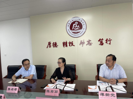 2021年6月16日下午,Beat365正版唯一官网必一与新道科技股份有限公司数智财经产业学院建设研讨会在学校办公楼三楼会议室举行,Beat365副校长陈君丽、副校长薄新党、新道科技股份有限公司华中区总经理张林峰出席会议,Beat365正版唯一官网必一多位教师代表参加了会议。