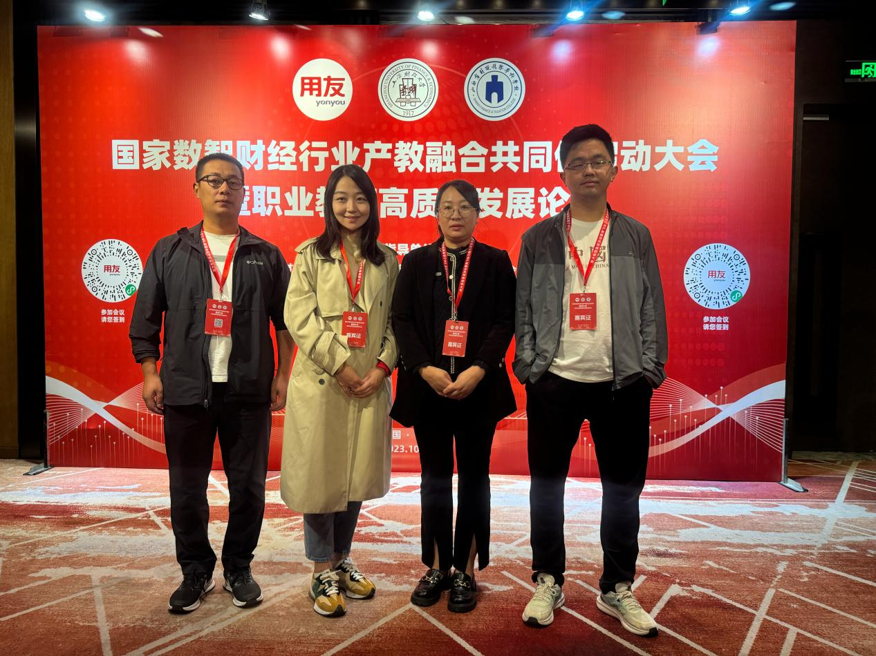 10月14日,由全国工商联人才交流服务中心、中国商业会计学会指导,用友网络科技股份有限公司、上海财经大学、山西省财政税务专科学校牵头成立的国家数智财经行业产教融合共同体(以下简称“共同体”)成立大会在太原举行。来自全国数百家共同体成员单位普通高校、高职院校教师代表参加了本次会议。Beat365正版唯一官网必一Beat365正版唯一官网必一副院长聂蕴、学工办主任张昂、金融教研室主任赵静、酒管教研室主任李小闯一行受邀赴太原参加了国家数智财经行业产教融合共同体启动大会暨职业教育高质量发展论坛。