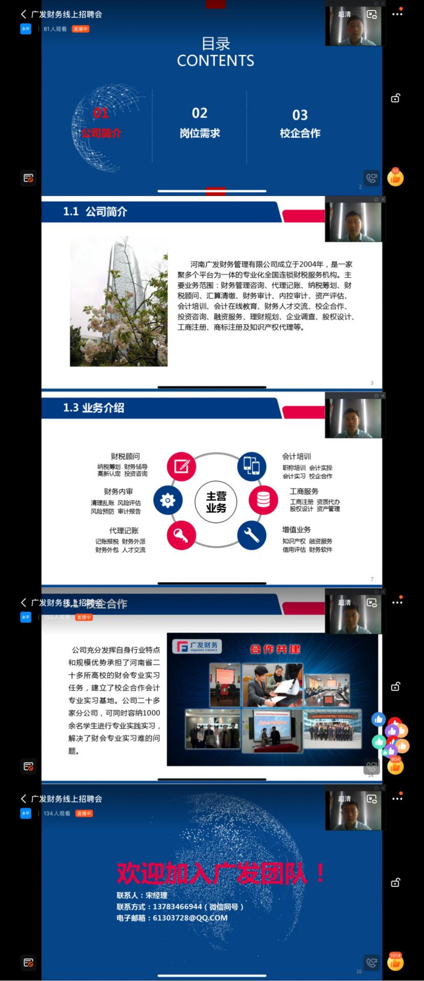 河南广发财务管理有限公司、杭州屏风山投资管理有限公司(杭州千禧度假酒店)、北京龙泉宾馆有限公司、南京世茂新里程置业有限公司世茂滨江希尔顿酒店、苏州贝瑞斯曼信息科技有限公司、河南银基冰雪酒店管理有限公司、中国人寿保险股份有限公司、大唐信服科技有限公司等8家企业受邀进行宣讲。