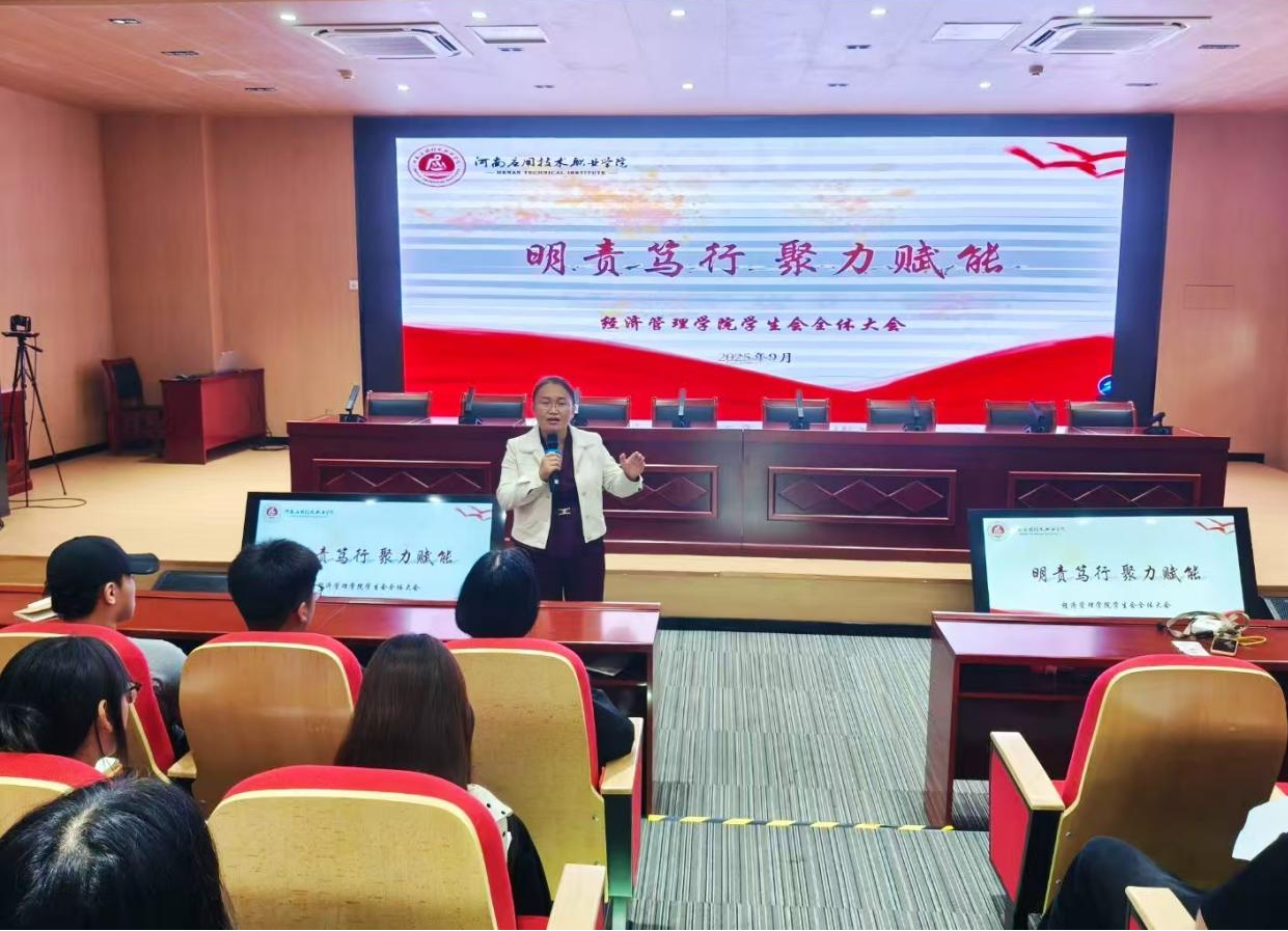 王盼红书记在总结发言中深入阐释了学生会的育人价值。她指出,参与学生工作既能提升专业能力,又能通过志愿服务、实践项目培养综合素质,希望同学们珍惜平台、勇担责任,在服务中成长,在奉献中闪光。