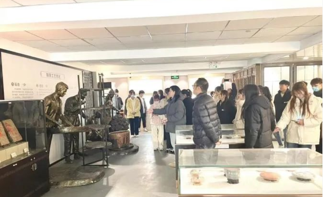 开茶香之旅,品宋之古韵。在研学过程中,馆长刘青女士从茶具、茶饼、报纸资料及相关古物四个视角分析了宋茶特点、饮茶文化。博物馆讲解员从制茶流程、品茶方式、玩茶艺术等层面给大家讲述了宋韵茶俗中的茶人趣事。茶香氤氲中,同学们边走边看边听,深层次感受茶道文化魅力,更加热爱所学专业。