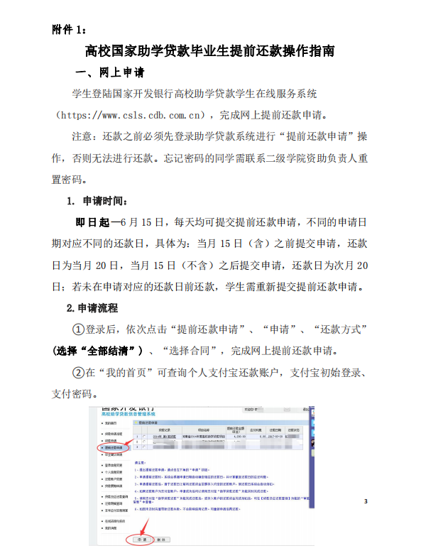 附件1:高校国家助学贷款毕业生提前还款操作指南Beat365正版唯一官网必一